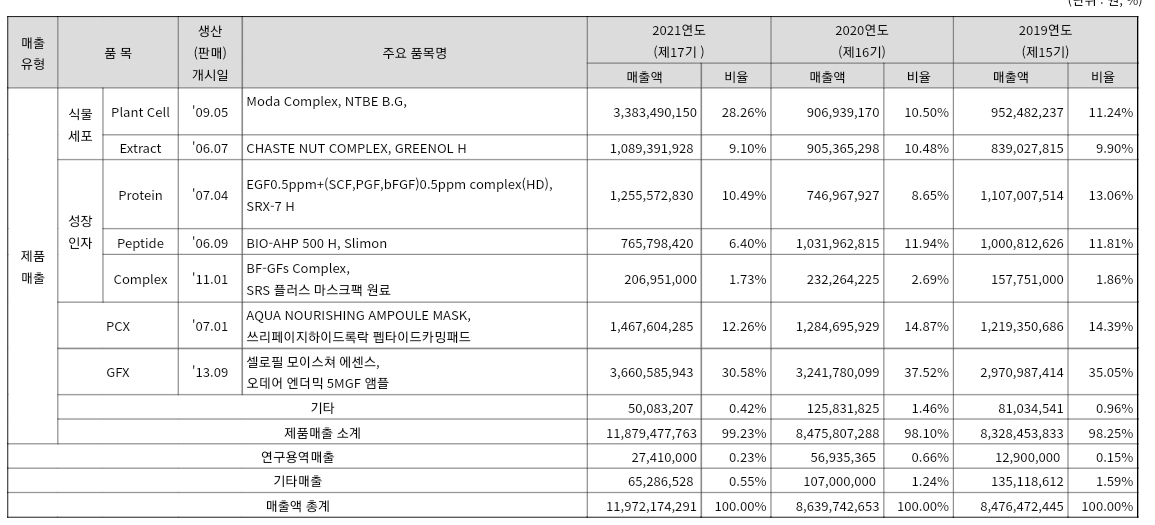 바이오에프디엔씨는 해당 식물세포 플랫폼 기술을 기반으로, 식물세포 유래 유효물질(식물세포, 성장인자 등)의 개발을 통한 꾸준한 매출성장을 기록하고 있으며, 중장기적으로는 식물세포 유래 약리물질(의약품 등)의 상업화를 계획하고 있습니다. 식물세포 기반 약리물질 파이프라인으로 줄기세포촉진제(P334-CT(포피라334), 시약), 방광배뇨개선제(KSF-F(쿠라리논, 건강기능식품), 요실금치료제(KSF-D(쿠라리논), 신약), 위암/위염치료제(HelicoMab, 신약) 등을 개발하고 있습니다. 이러한 신규 사업들 중 사업화 속도가 가장 빠른 줄기세포 촉진제는 빠르면 2022년 또는 2023년부터 매출발생이 가능할 것으로 기대하고 있으며, 다른 신규 사업들도 회사의 연구개발 로드맵에 맞추어 착실하게 사업화 과정이 진행되고 있어, 향후 더 큰 성장이 기대됩니다. 이와 같이 바이오에프디엔씨는 지속적인 기술 고도화를 통해 식물세포 유래 약리물질 분야를 확장하고 있습니다.
