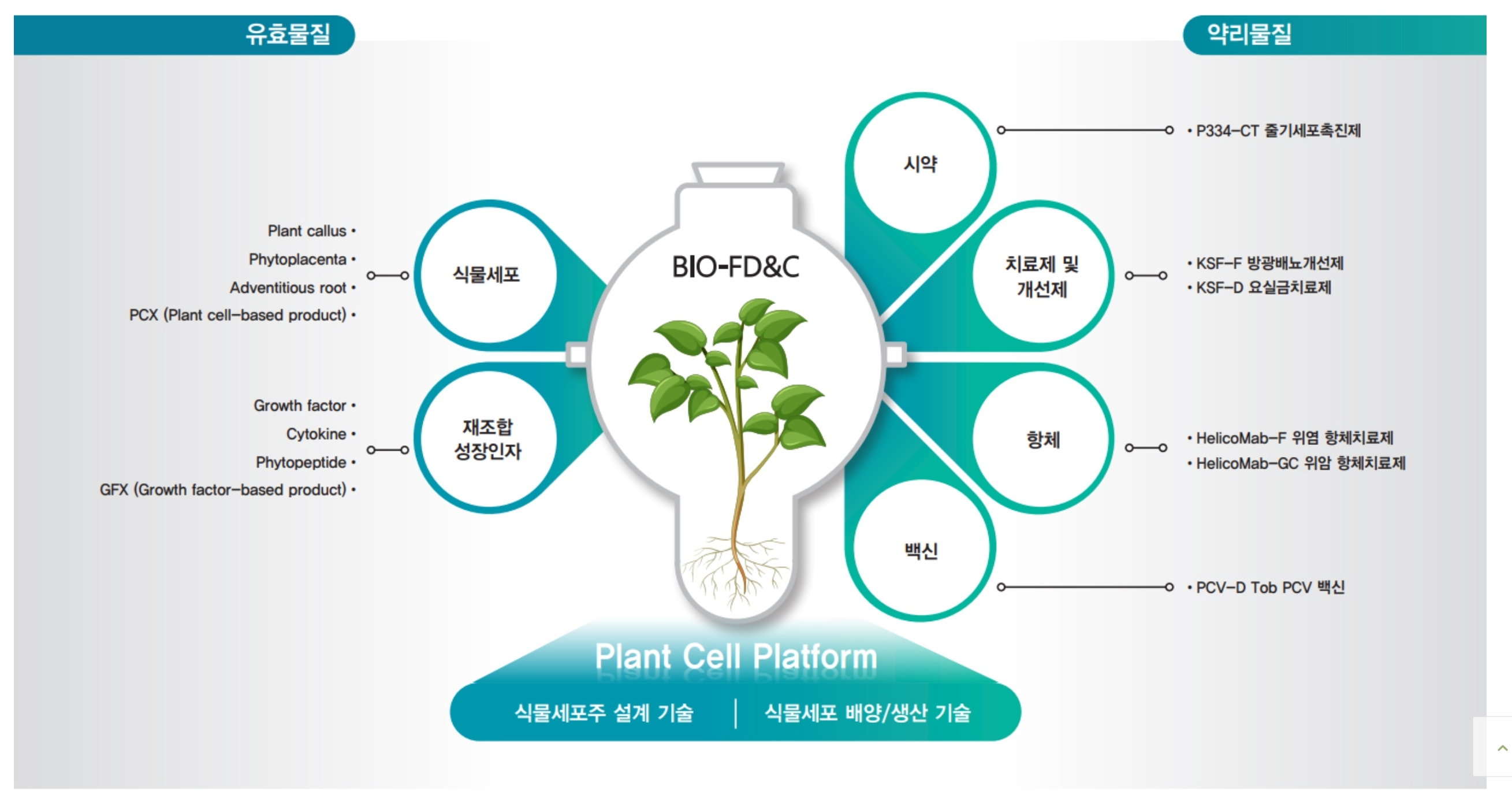 바이오에프디엔씨는 식물세포 플랫폼 기술(식물세포 설계기술 및 배양기술)을 기반으로, 코스메슈티컬, 건강기능식품, 의약품 등의 소재로 활용되는 식물세포 유래 유효물질(식물세포주, 성장인자, 펩타이드 등)과 식물세포 유래 약리물질(항체, 백신 등 바이오의약품)의 연구개발 및 제조를 주사업으로 영위하고 있습니다.