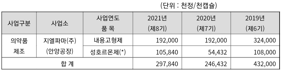 사업보고서에서 알 수 있다시피 2021년 성호르몬제 설비증대로 인해 2020년도 대비 생산능력이 증대되었습니다.