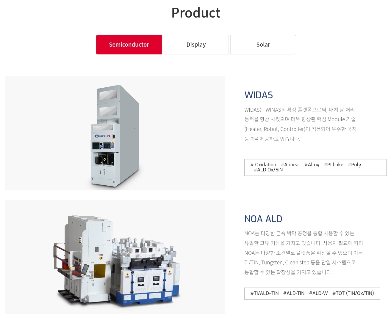 원익IPS는 반도체, Display 및 Solar Cell 제조용 장비를 생산ㆍ판매하고 있습니다.