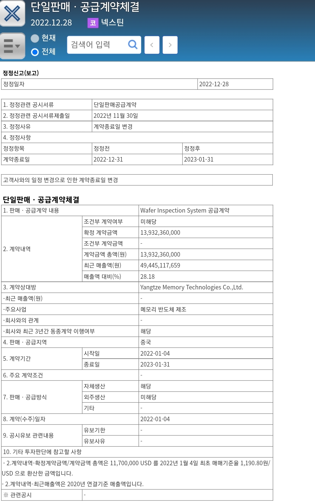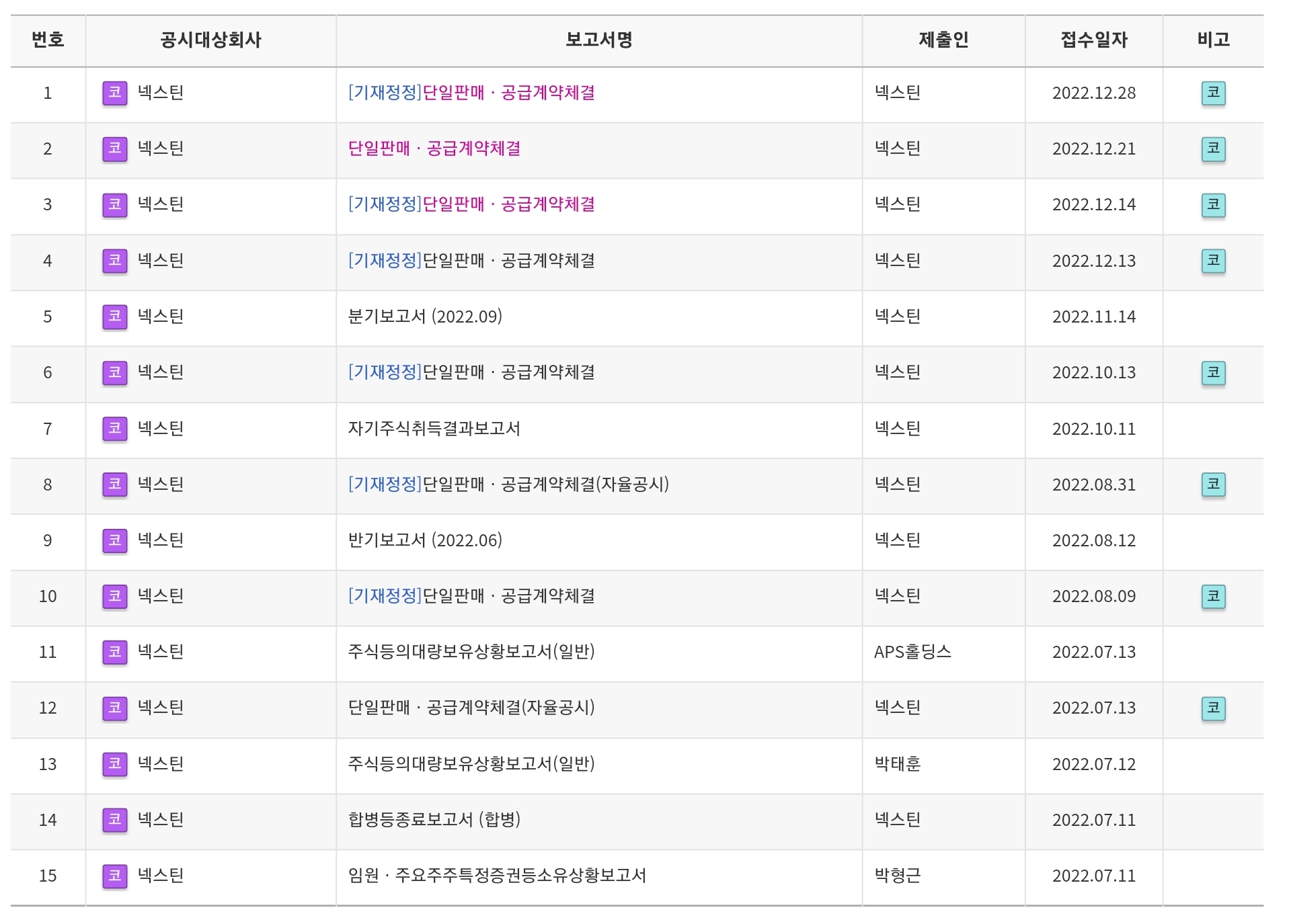 넥스틴은 주요 수주가 있을 시 항상 수주공시를 하고 있습니다. 이러한 공시는 회사의 실적을 외부에 알리는데 큰 도움이 되며 회사가 주주에게 정보를 제공하고 주가에 이를 반영하려는 노력을 한다는 의미입니다. 아무리 회사가 좋아도 회사가 좋다는걸 스스로 외부에 알리지 않으면 투자자들은 이를 알 방법이 없고 주가도 오르지 않습니다. 우리나라엔 그러한 코스닥 상장사들도 많지만 넥스틴은 그렇지 않습니다. 보통은 경영승계가 마무리되지 않은 코스닥 상장사에서 주가가 오르는 것을 꺼려할 때 호재가 있어도 외부에 알리는 것을 꺼리는데 넥스틴은 그러한 이슈가 없습니다.