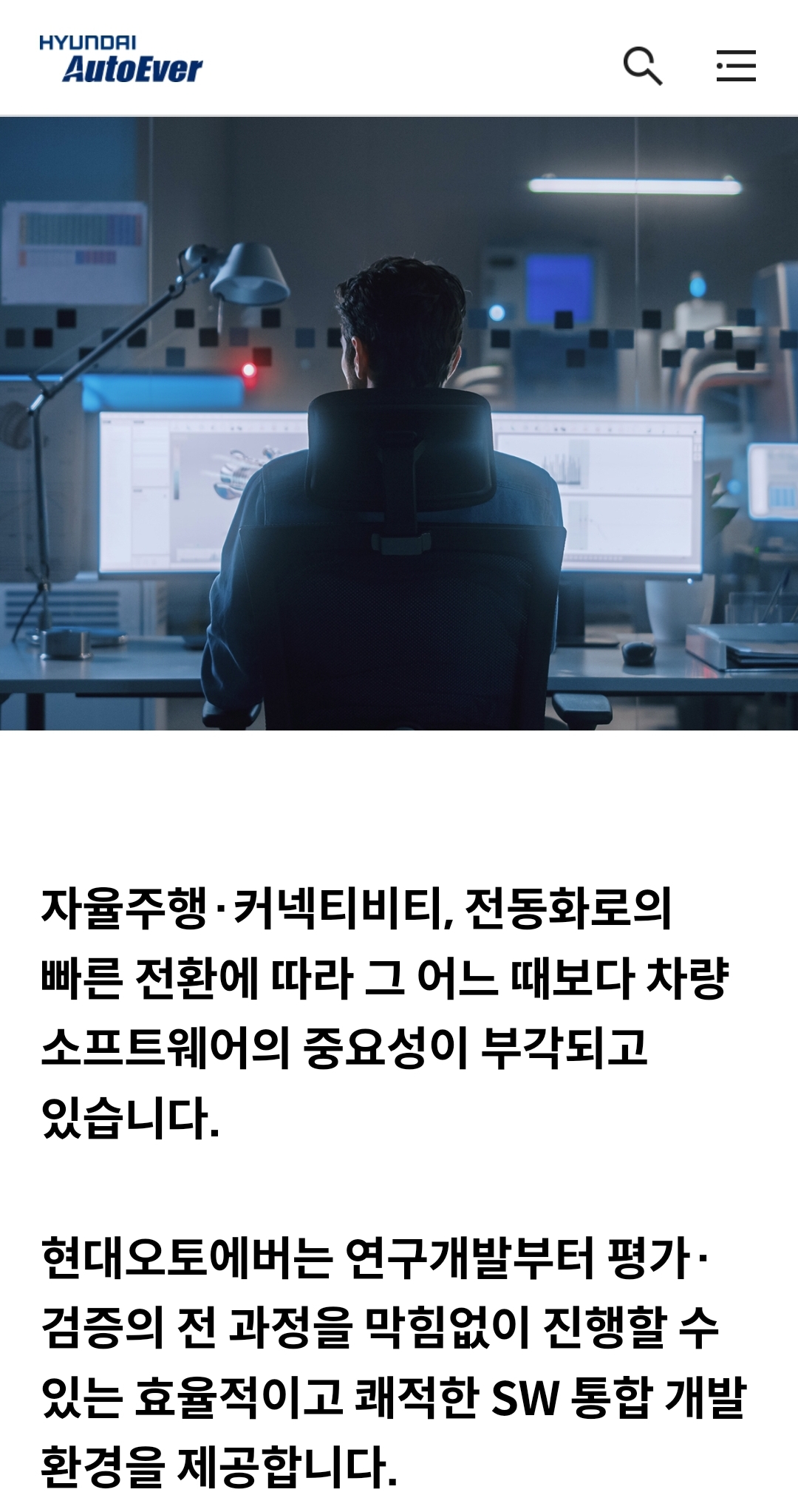 현대오토에버는 그룹내에서 ‘모빌리티 SW 프로바이더’라는 포지션을 맡고 있습니다.