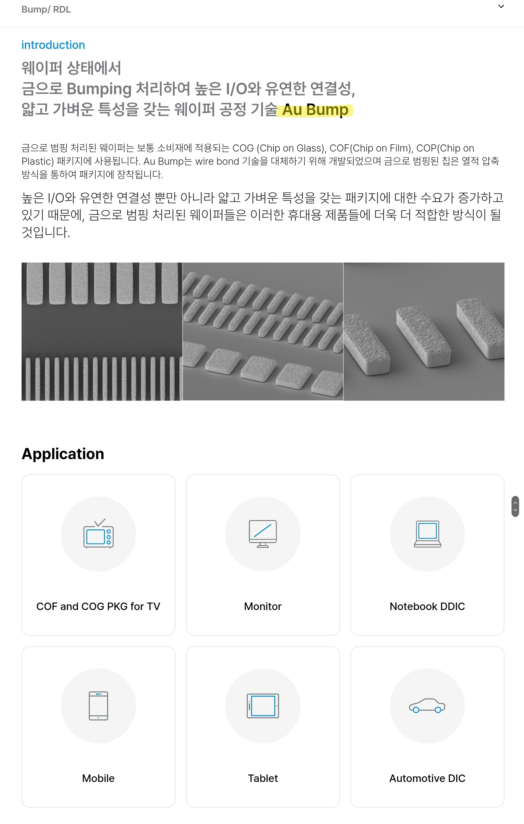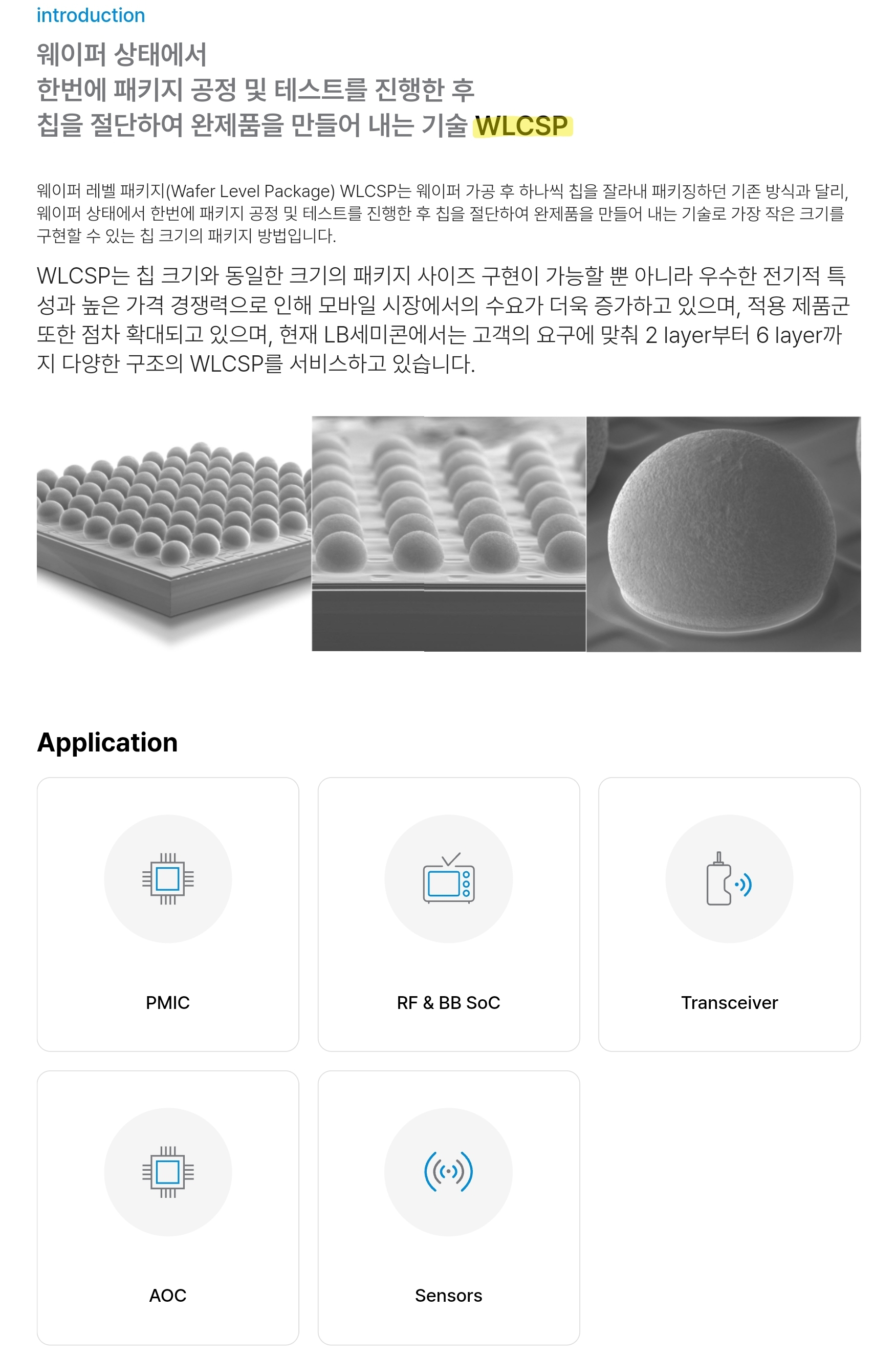 아래 기술들은 엘비쎄미콘의 공식홈페이지에 기재되어있는 기술입니다.