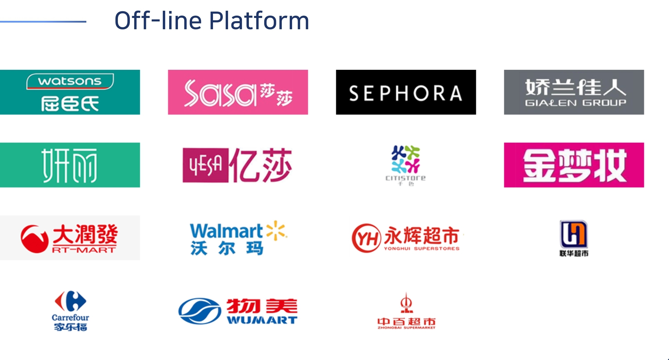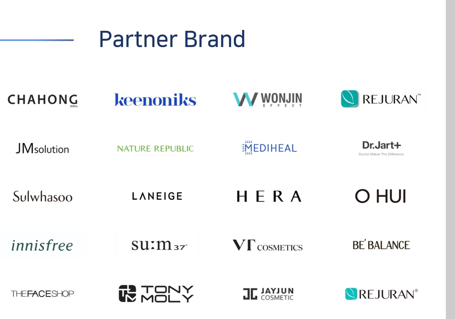 또한 청담글로벌은 중국에서 아래와 같이 다양한 브랜드들과 파트너쉽을 맺고 있습니다.