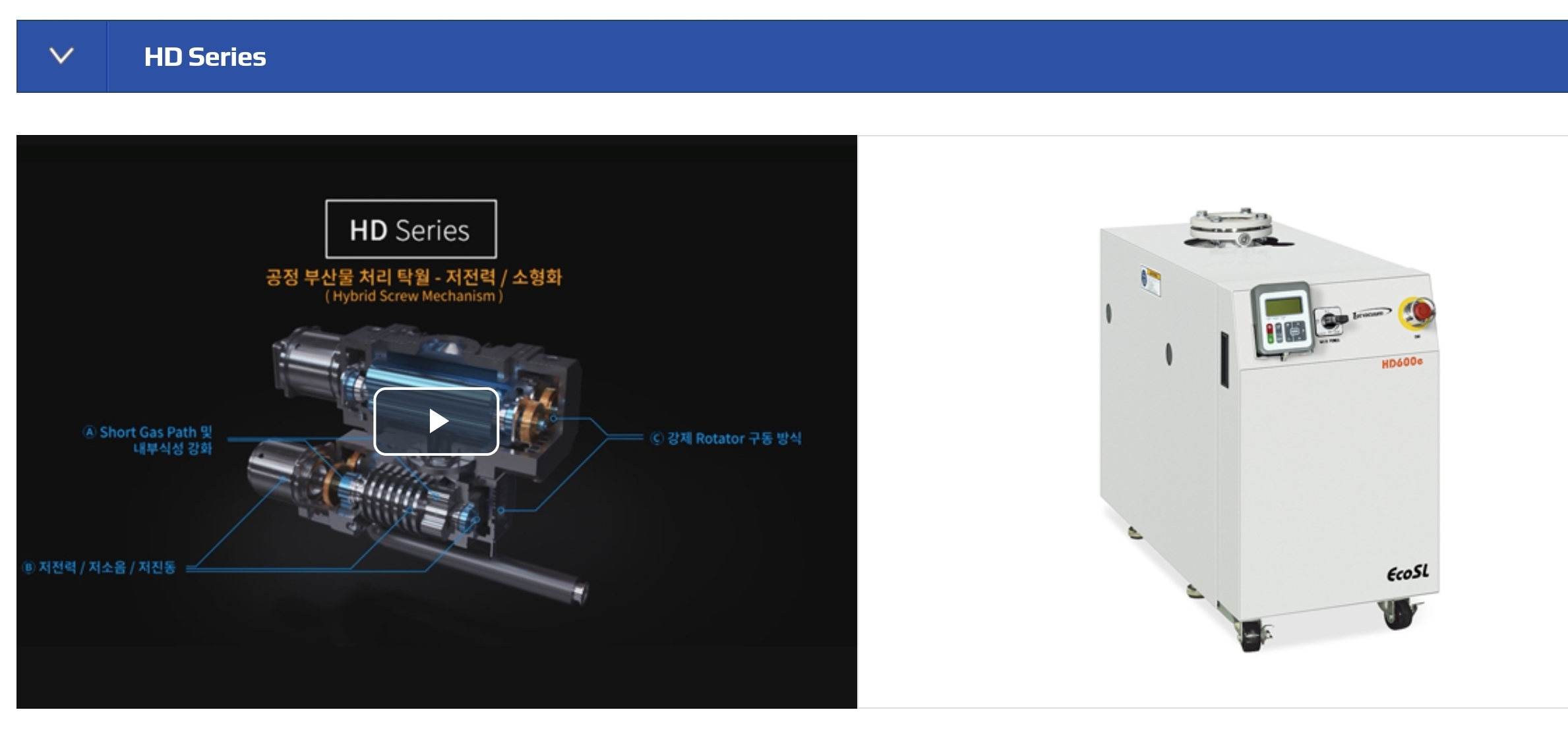 세계최초의 진공펌프 회사인 독일의 Oerlikon Leybold Vacuum사로부터 미국 피츠버그에 있던 건식진공펌프사업부문을 2002년 6월에 인수하여, 한개 모델의 영구사용권을 가지고 사업을 시작하여 현재는 약 7개의 모델과 90여종의 제품을 자체적으로 국산화 개발하여 사업을 영위하고 있습니다.