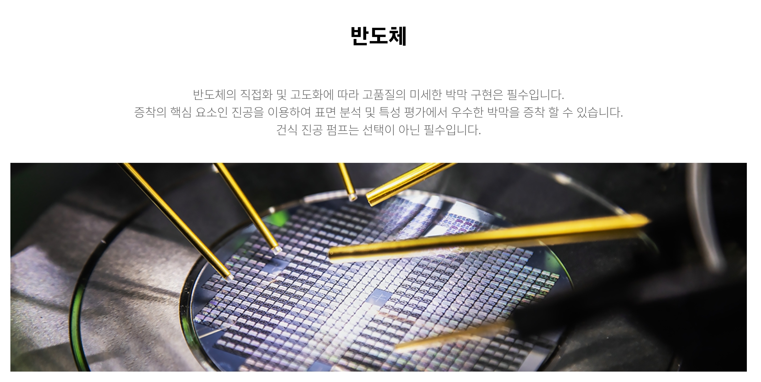 반도체 및 디스플레이 제조공정은 대부분 진공상태에서 제조 생산되고 있기 때문에 이들 산업에 진공펌프는 필수적으로 사용되는 장비입니다.