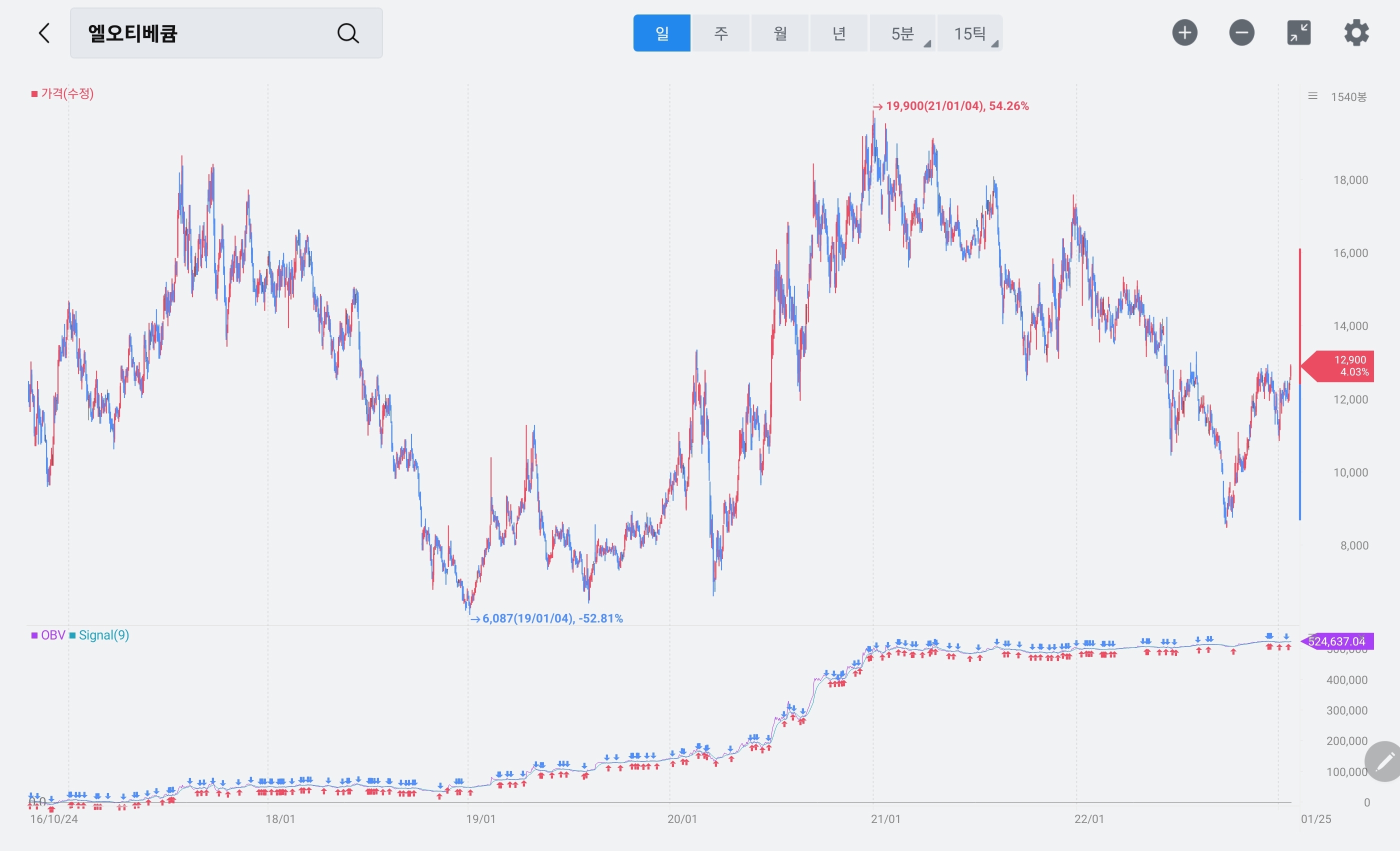 현재 엘오티베큠의 시가총액은 2023년 1월 25일 종가기준 2,297억입니다. 미래성장성과 현재 실적까지 모두 고려해봤을 때 고평가라고 볼 수는 없을 것 같습니다. 또한 주가도 고점대비 많이 내려와있기 때문에 부담스럽지 않은 수준입니다. 천천히 모아가기 좋은 주식이라고 생각합니다.