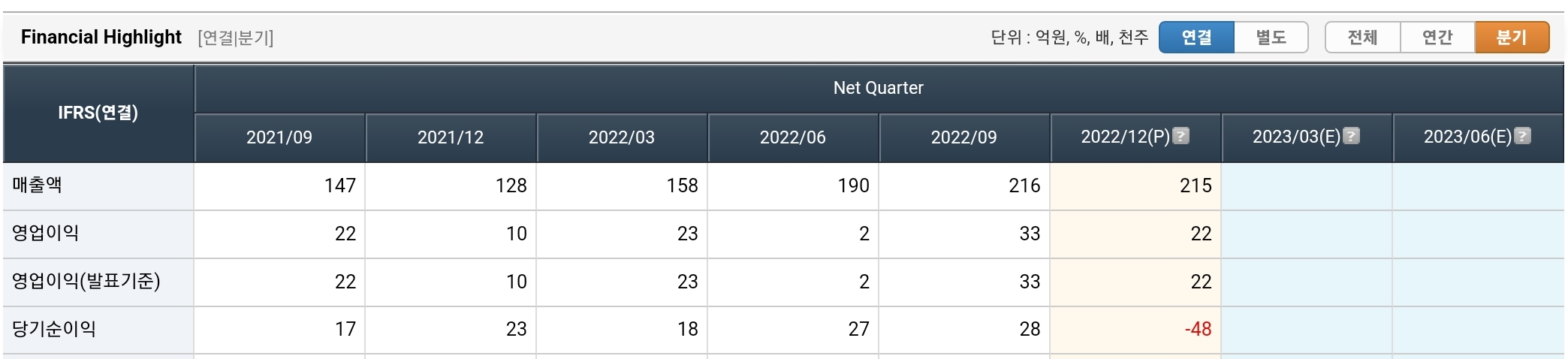 다만 당기순이익이 4분기 기준 적자전환을 했습니다. 다만 이는 전환사채 전환가격과 주가 간 차이가 발생함에 따라 32억 규모 파생상품 거래 손실 발생이 발생한 것에 기인한 것으로 이로인한 손실발생 금액은 32억 이었습니다. 다만 이 손실은 최근 주가 급등으로 인해 발생한 손실로 회사에 타격을 주는 손실은 아닙니다.