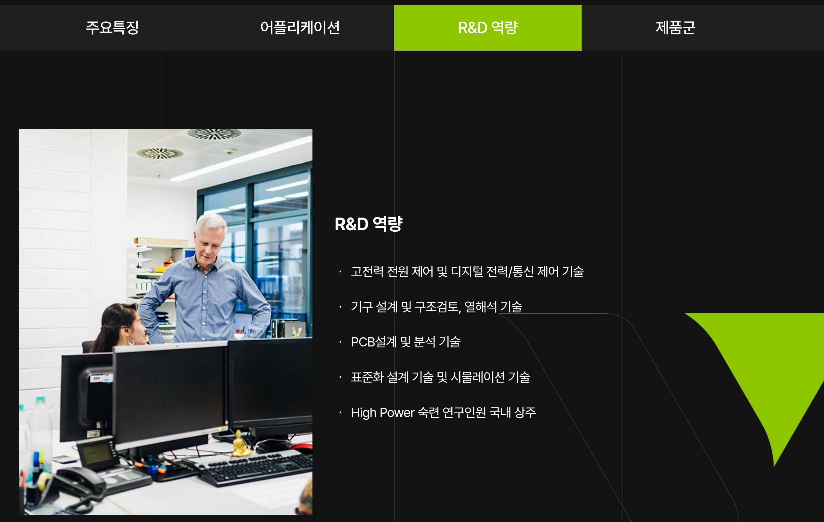 특히, UHD, OLED TV 부문의 초 SLIM SMPS를 개발하여 동종 업계 대비 최고의 기술력과 생산경쟁력을 확보하고 있습니다. 이를 기반으로 전기자동차 충전기, 차량용 인버터, 에너지저장시스템(ESS) 등 중대형 SMPS로 시장을 확대해 나가고 있습니다.