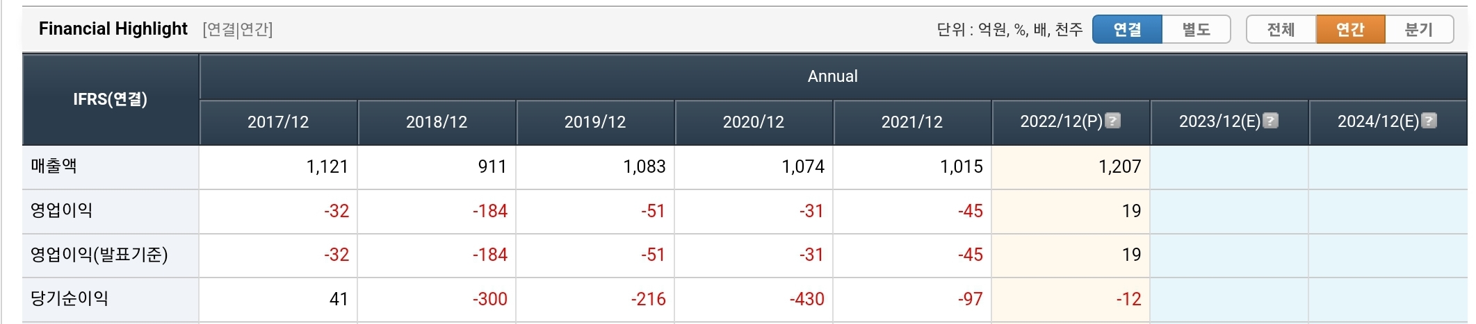 지난 6년간 와이투솔루션의 실적입니다. 주력 사업이었던 LG TV향 SMPS 사업이 부진하면서 적자의 늪에서 빠져나오지 못했습니다.