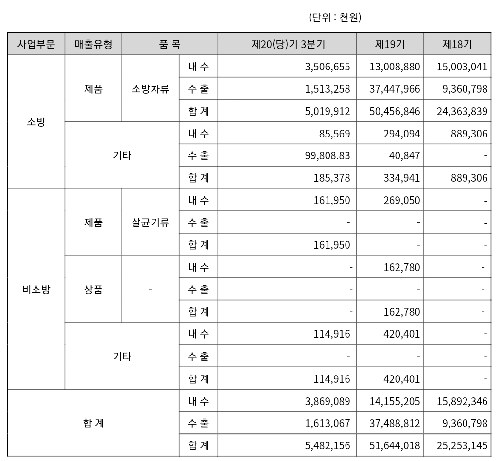 이엔플러스의 현재 주력 사업부문은 소방차관련 사업부문입니다.