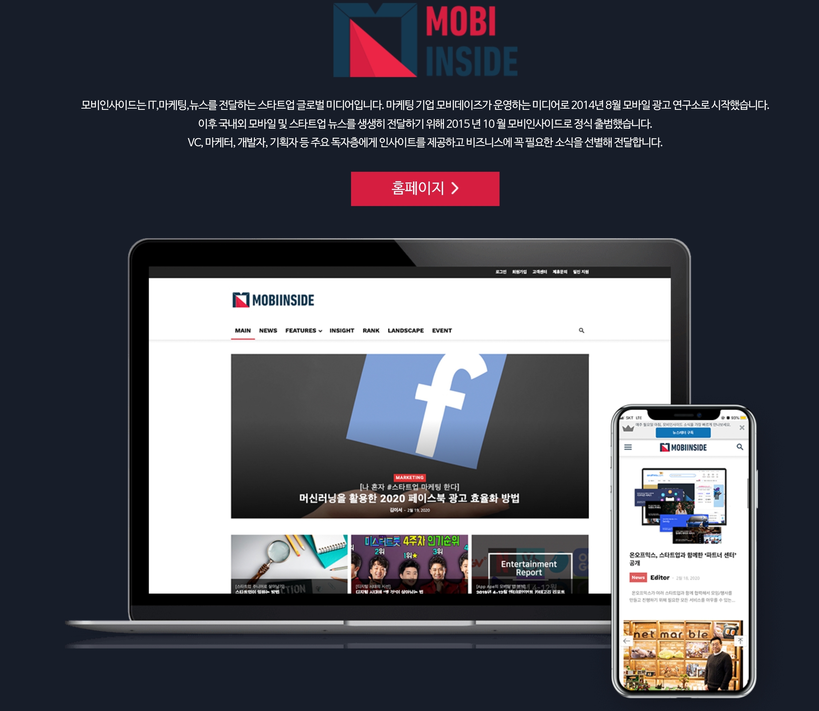 이에 더하여 고객이 마케팅과 관련하여 겪는 다양한 문제를 One-stop으로 해결해주고 그에 따라 고객이 서비스를 다양하고 복합적으로 사용할 수 있게 하는 마케팅 중심의 유관 사업도 운영하고 있습니다. 마케팅 유관 서비스로는 마케팅 및 스타트업 뉴스미디어인 ‘모비인사이드’, 마케팅 전문 온오프라인 교육 서비스인 ‘모비아카데미’, 마케터 전용 인력 매칭 서비스인 ‘모비인터치’, 국내 최대 애드테크/마케팅 컨퍼런스인 ‘맥스서밋’과 ‘맥스더크리에이티브’를 운영하고 있습니다.