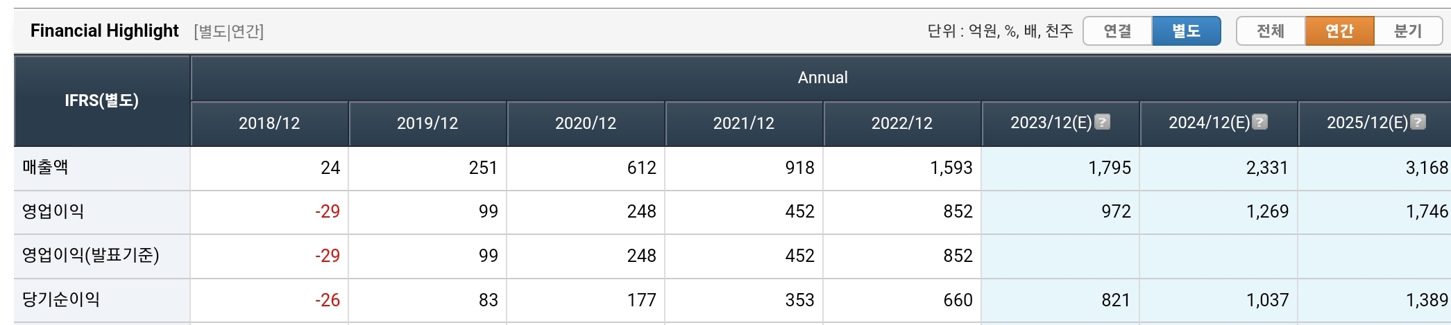 위의 표에서 알 수 있 듯 HPSP는 지난 5년간 정말 폭발적인 매출성장을 이뤄왔으며 영업이익률은 50%에 육박하고 있습니다. 보통 제조업의 영업이익률은 15%정도 나오면 시장에서 정말 높다고 평가를 하기 때문에 50%의 영업이익률은 정말 비현실적으로 높다고 할 수 있습니다.