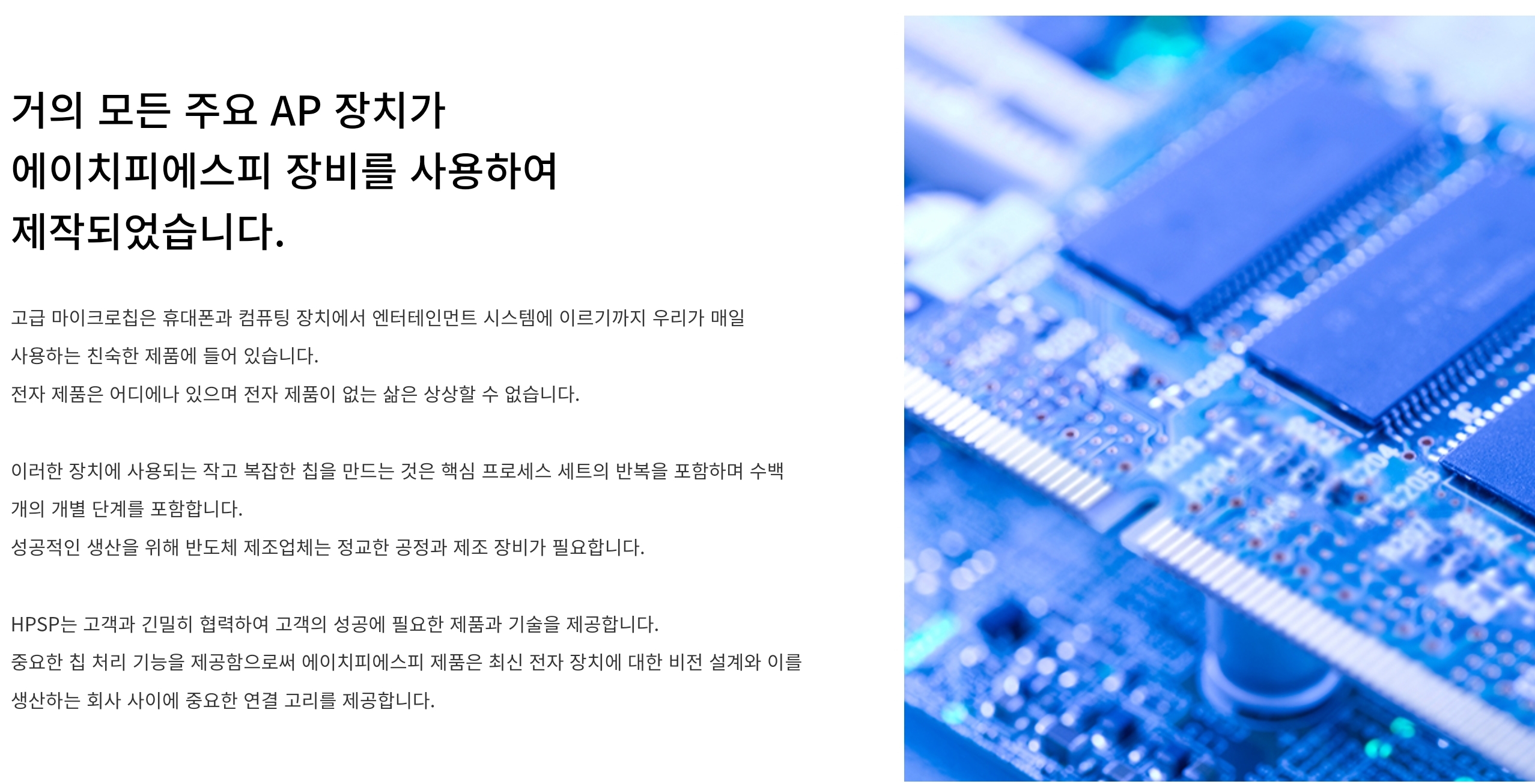 이러한 특성으로 인해 HPSP의 고압 수소 어닐링 장비는 주요 글로벌시스템반도체 제조업체뿐 아니라 국내외 메모리반도체 업체에도 납품되고 있습니다.