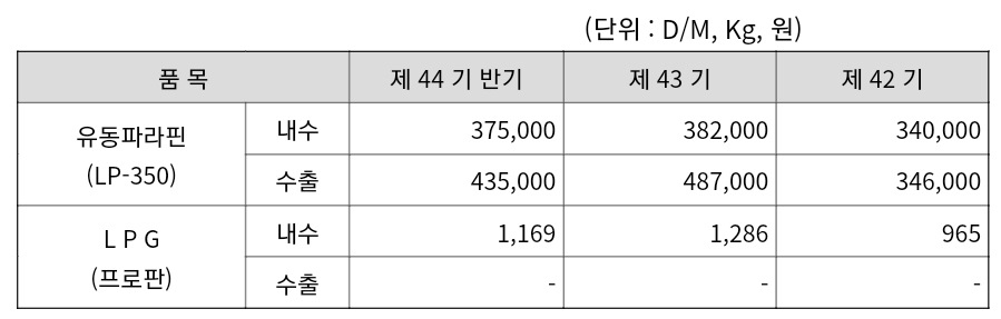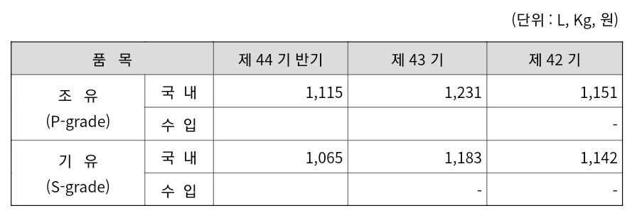 석유 및 윤활류의 특성상 필수재의 성격이 강하기 때문에 원가 상승을 제품 가격에 전가하기 쉬운 구조이기 때문에 유가에 큰 영향을 받지 않고 영업이익을 안정적인 수준으로 유지하고 있습니다.