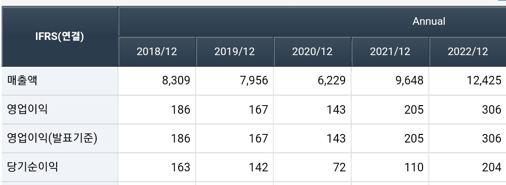경기 변동에 따라 가격변동이 심한 사업을 영위하고 있음에도 지난 5년간 적자가 한 번도 없습니다. 회사가 제품 가격 및 원재료 매입 통제를 잘하고 있다는 증거입니다.