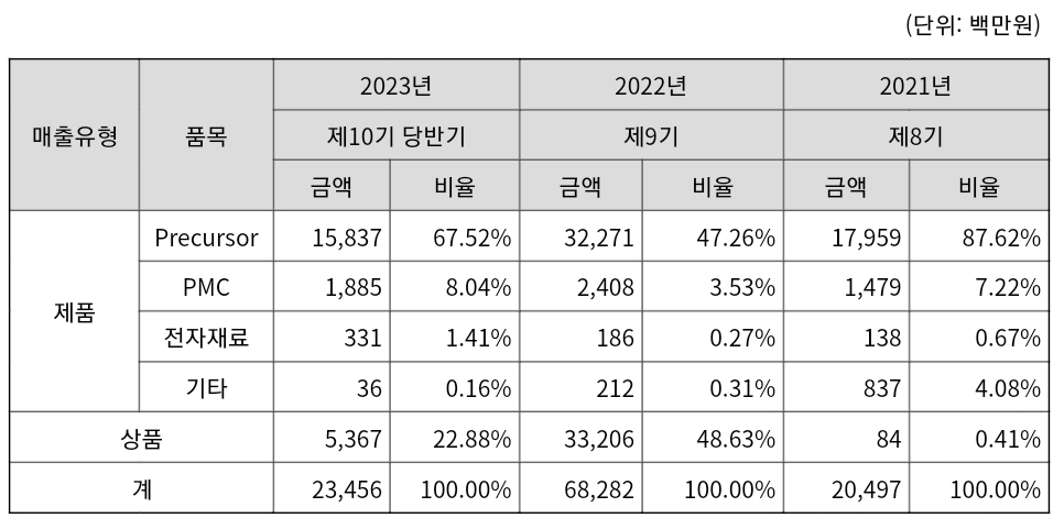 제이아이테크의 매출에서 가장 높은 비중을 차지하는 것은 프리커서 입니다. 그리고 두번째로 매출 비중이 높은 PMC 부문이 앞으로 제이아이테크의 주가가 오르기 위해서 가장 중요한 부문입니다.