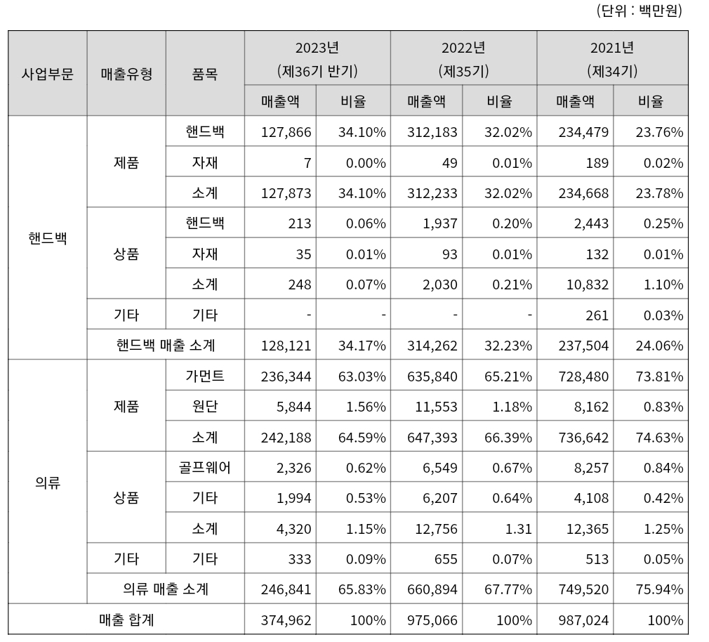 [핸드백 제조부문]