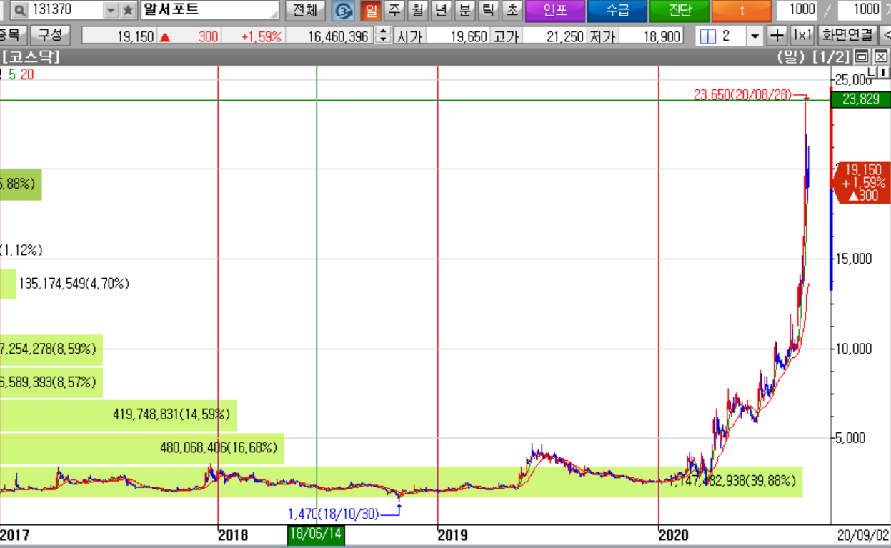 위에서 볼 수 있다시피 알서포트의 주가는 바이러스 이전엔 3,000원 선에서 계속 등락을 반복했었습니다. 그러던 주가는 사회적 거리두기 및 재택근무의 영향으로 재택서비스가 주목을 받으면서 현재의 19,000원까지 상승했습니다.