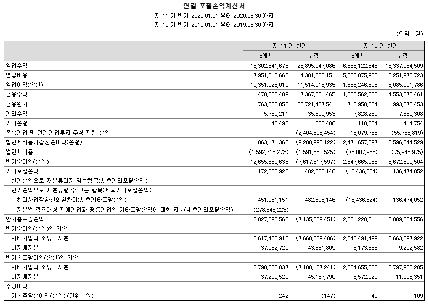 더 자세한 정보는 알 수 없지만 영업은 성공했으나 파생상품 처분손실이 크게 발생하면서 순이익이 줄어든 것이기 때문에 이러한 One off 이벤트의 영향을 거둬낸다면 올해 반기기준 순이익은 약 125억 정도가 되었을 것으로 보입니다.