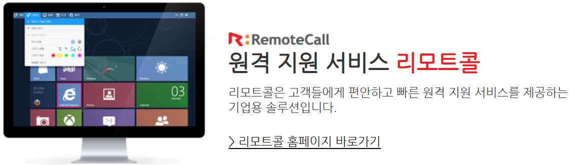 *리모트콜은 PC 이용 고객에 대한 지원 뿐 아니라, 사내 컴퓨터 유지보수, 업무 공유를 위한 협업 등 다양한 업부에 확용됩니다.