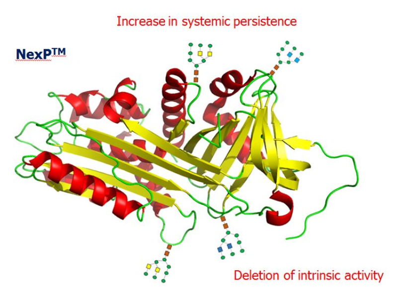 현재 전세계 11개국 특허 등록이 완료되었으며 지속형 성장호르몬, 지속형 혈우병치료제, 지속형 폐기존치료제, 지속형 당뇨병치료제 등을 개발중임