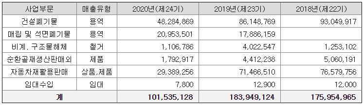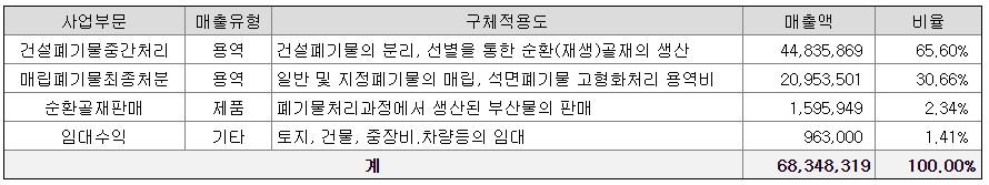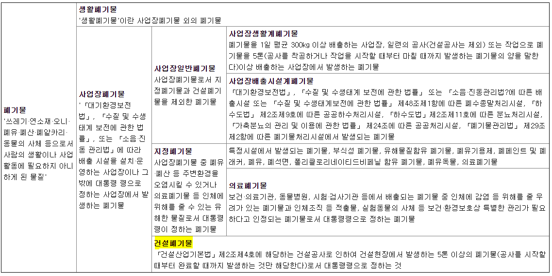 위의 내용에서 알 수 있다시피 매출의 65%가 건설폐기물 처리에서 발생하고 있으며 건설폐기물은 생활폐기물과 구분되며 사업장 폐기물 중에서도 별도로 분류되고 있는 것을 알 수 있습니다.